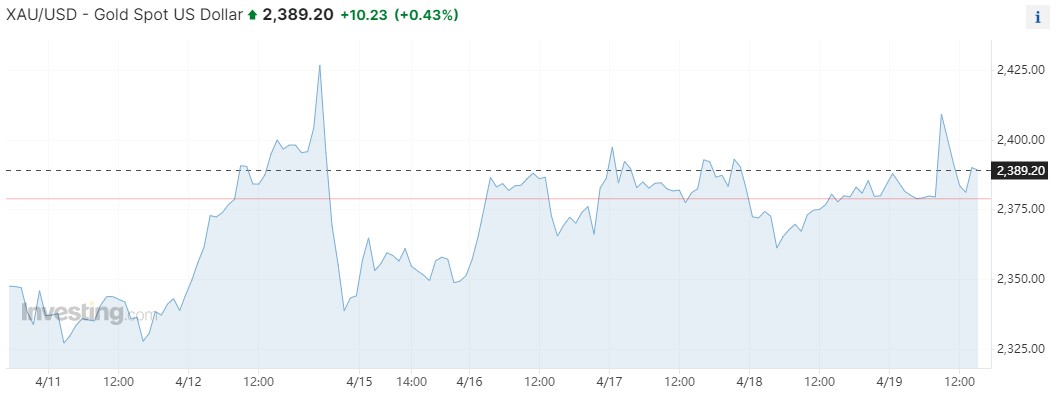 周五,因对以色列和伊朗之间紧张局势升级的担忧推高了避险需求,金价一度飙升至每盎司2400美元以上。在媒体报道伊朗、叙利亚和伊拉克发生爆炸后,金价一度上涨1.3%,连续第五周上涨。截至发稿,现货黄金涨幅收窄至0.4%,至每盎司2389美元。彭博美元现货指数上涨0.2%。银、钯和铂也出现上涨。